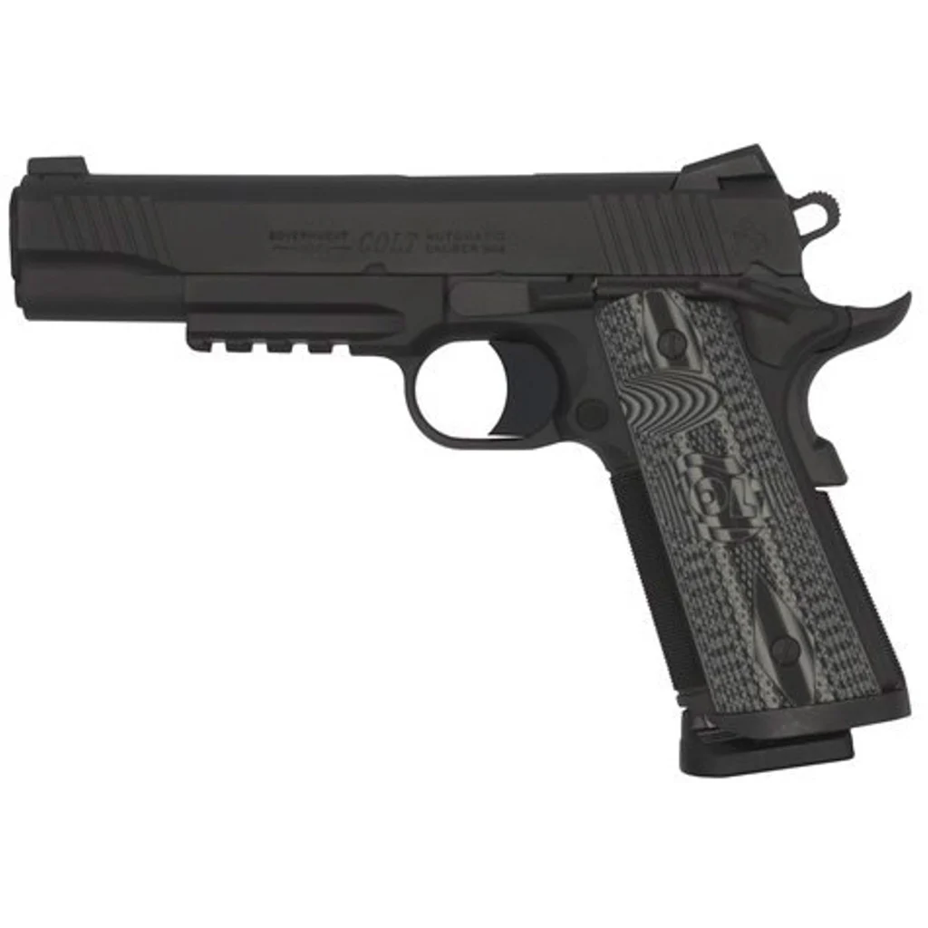 The Colt 1911 CCU Rail Government is a full-size .45 ACP pistol built around a 5-inch national-match stainless steel barrel and an M1913 Picatinny accessory rail. It ships with Novak front and rear sights, G10 checkered gray grips with scallops, and an extended magwell to aid reloads. The pistol incorporates Colt’s Series 80 firing system and is aimed at shooters who prioritize match-grade components and practical accessory mounting.