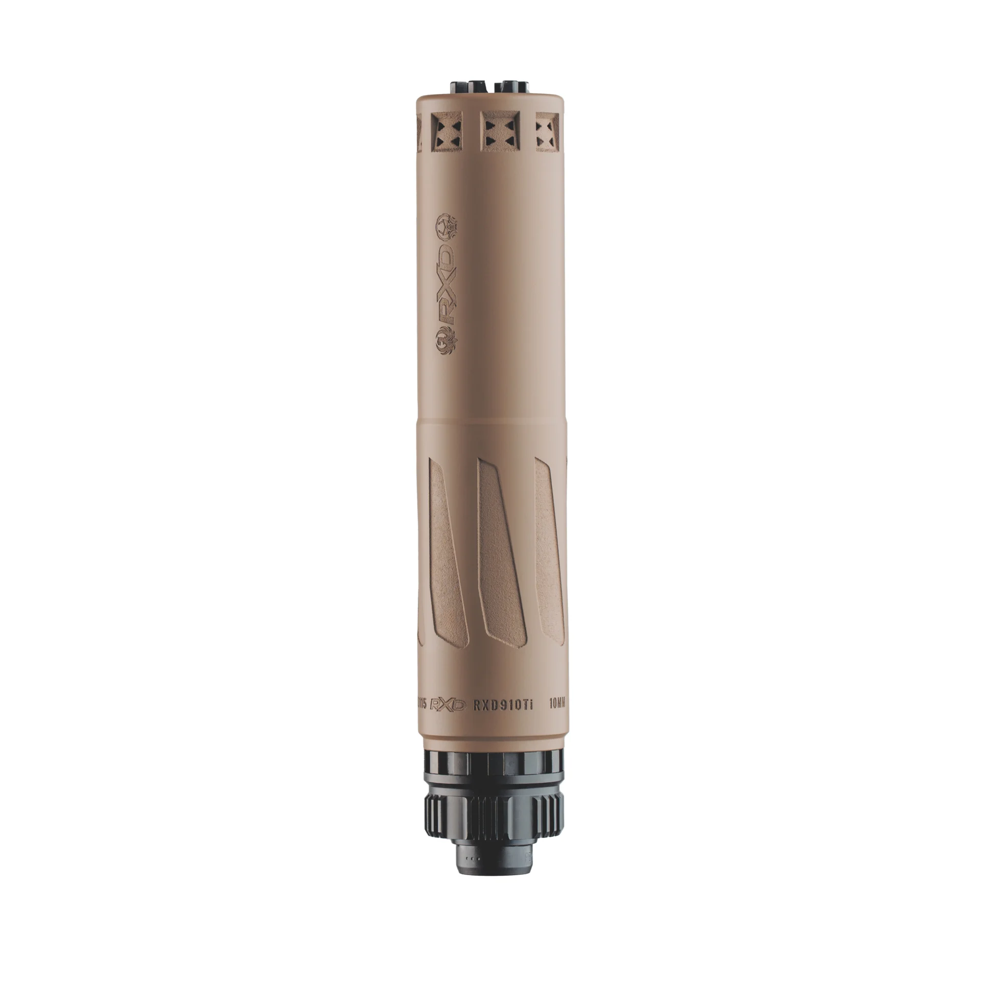 DEAD AIR RXD910TI 9MM SUPPRESSOR FDE 9MM OPTIMIZED, 10MM CAPABLE GMS, 1/2X28 PISTON