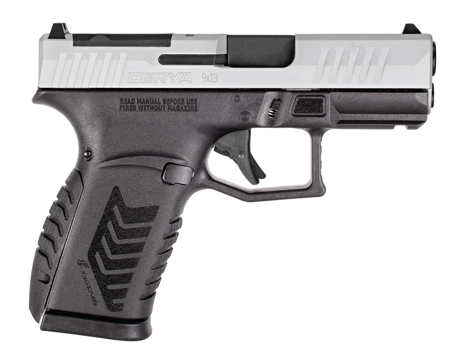 Derya DY9 Comp 9mm with a 4.64 inch compensated, threaded barrel; optic-ready slide, interchangeable backstraps, black Melonite finish. Includes hard case, magazine, compensator and two optic plates.
