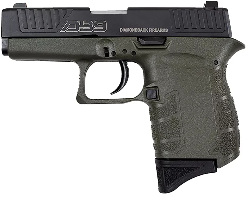 The Diamondback DB9 Gen IV is a micro-compact, semi-automatic 9mm pistol built with a polymer OD Green frame and a stainless steel barrel measuring 3.10 inches. It is designed for discreet carry and everyday use where a compact profile is required, offering a low-weight package and a 6+1 loading configuration. The pistol includes a serrated black nitride slide and three-dot fixed sights for straightforward sighting in common carry scenarios.