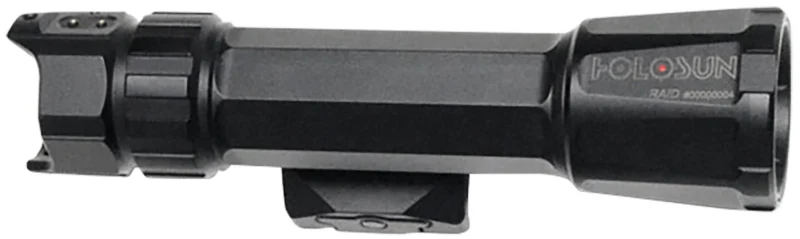 The Holosun RAID (Rifle Area Illumination Device) is a high-power long-gun white light designed for reliable area illumination and target identification at distance. It pairs a high-output LED with a rugged 7075-T6 aluminum body, multiple mounting options, and a rechargeable 18650 power source. The unit is engineered for regular field use and integrates both tailcap and remote-switch activation for mounting flexibility.