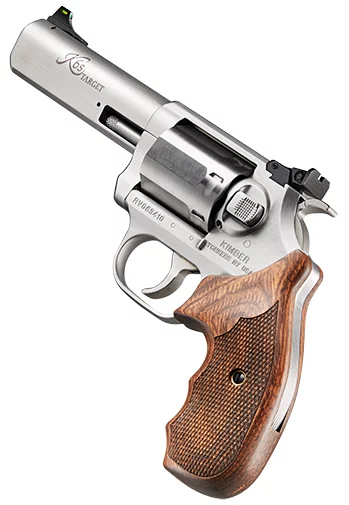 The Kimber K6S Target GFO is a California-compliant DA/SA revolver with a 4″ match-grade barrel, six-shot cylinder, brushed stainless finish, and fiber optic front sight. The extended target-style grip and adjustable rear sight make it well suited to