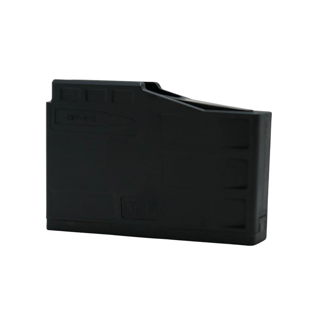 The AMEND2 MOD-3 AICS short-action magazine is a 5-round, polymer-bodied magazine intended for short-action centerfire rifles. It is designed for AICS-style short-action magazine wells and is suitable for bench shooting and states with capacity limits. Construction includes an anti-tilt super follower and a stainless steel spring for consistent feeding.