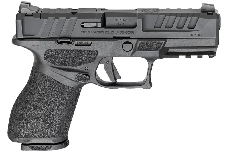 The Springfield Armory Echelon 4.0C is a compact 9mm pistol engineered for everyday carry and concealed use, featuring a 4″ hammer-forged steel barrel with a Melonite finish and an optics-ready, billet-machined slide. The serialized Central Operating Group is housed in a compact black polymer frame and the pistol incorporates Springfield Armory’s Variable Interface System for direct-mount compatibility with many red dot sights. The design emphasizes compact handling and modern sighting options for practical carry applications.