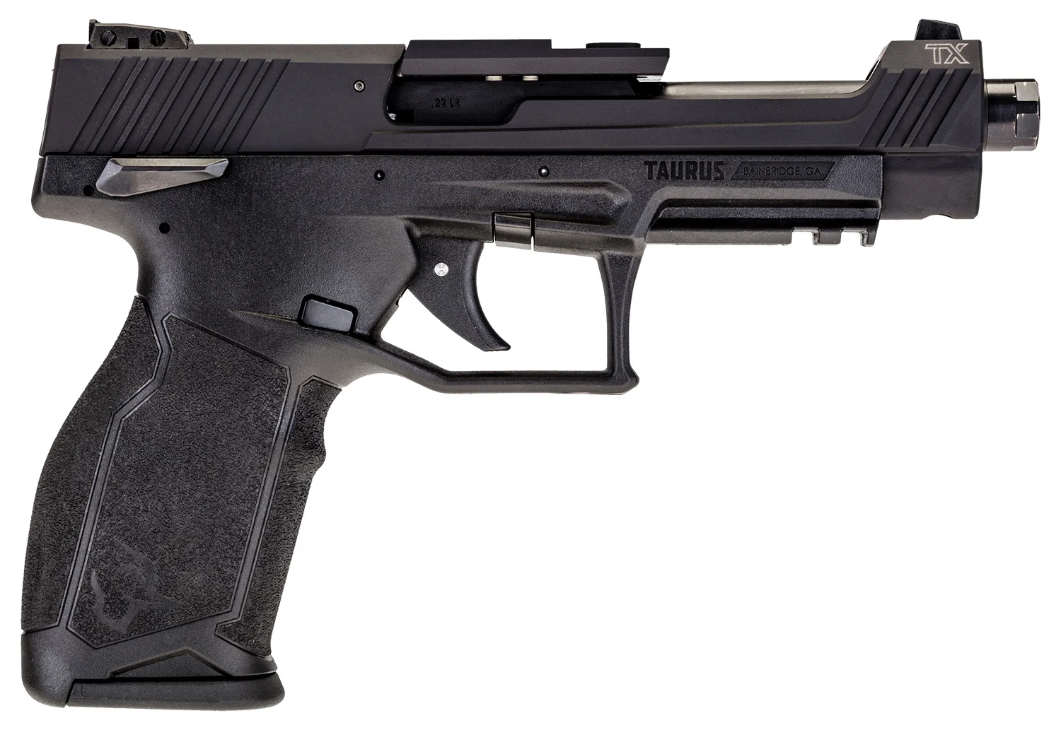 The Taurus TX22 Competition is a full-size semi-automatic rimfire pistol built for competitive and range-focused shooters. It pairs a polymer frame with an aluminum, optics-ready slide and a threaded steel barrel to support match-style use and aftermarket accessories. The design emphasizes controllability and accessory compatibility for target, training, and sport shooting applications.